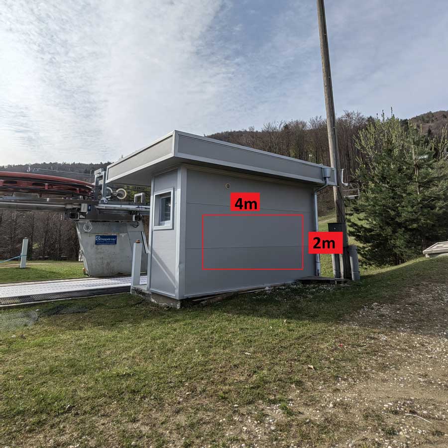 - spodnja postaja sedežnice Poštele (fasada stavbe)